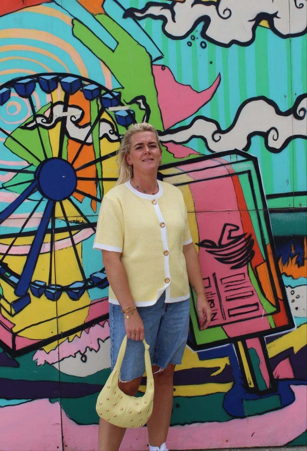 De Love Cardigan geel/wit is gemaakt van een gebreide, zachte stof die comfortabel aanvoelt en licht meerekt. Het vestje heeft korte mouwen, een ronde hals en is afgewerkt met goudkleurige knopen aan de voorkant. De rechte, iets cropped pasvorm maakt dit een makkelijk te combineren item – ideaal over een jurk, top of high-waisted jeans. Een fijne toevoeging aan je voorjaars- of zomerlook. Kan t/m maat 44 gedragen worden.