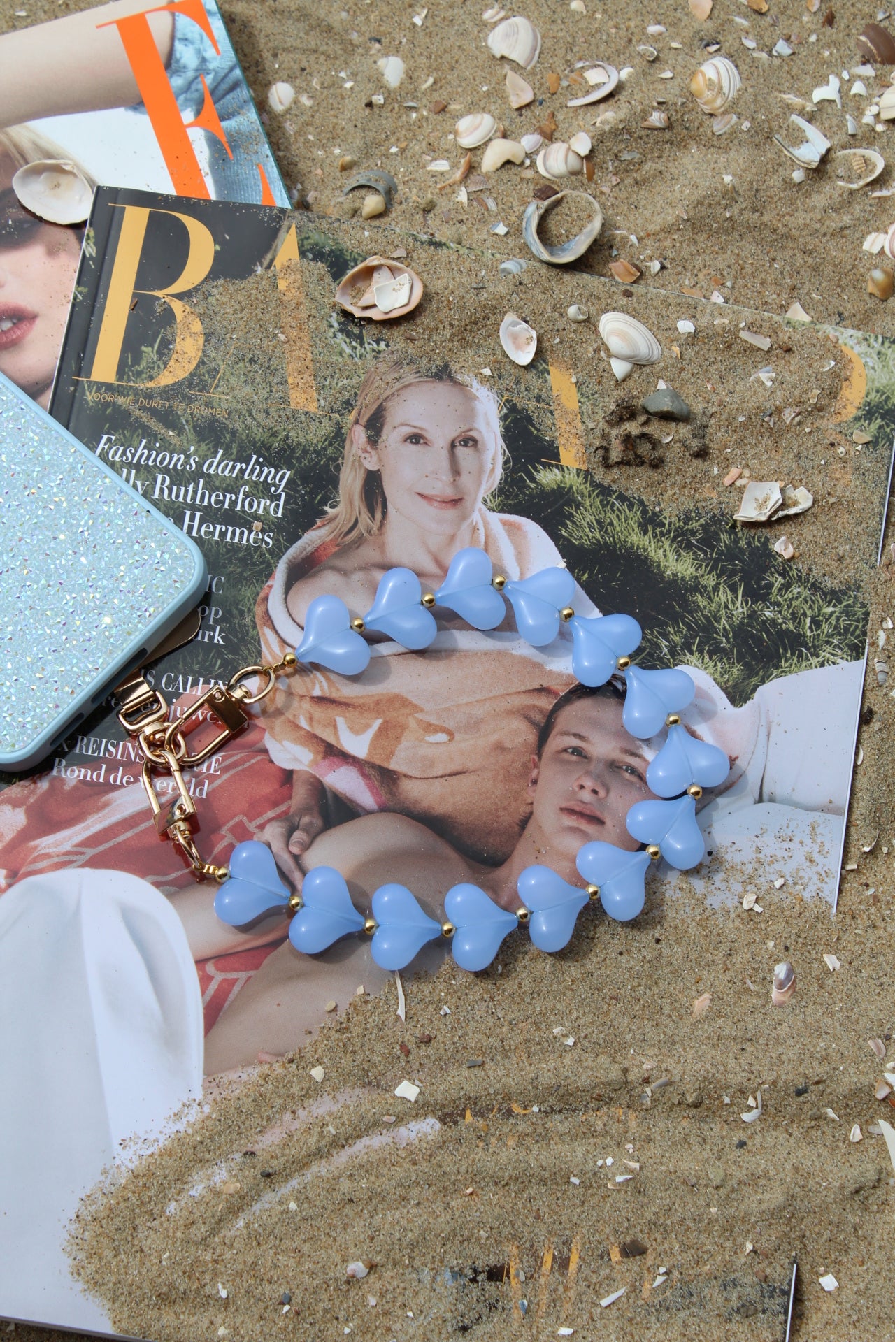 Hartjes telefoonkoord blue. Dit geweldige item is een toevoeging voor aan je telefoonhoesje. Plaats het gouden stukje achter je telefoon en plaats je hoesje erover heen. Via de opening voor je oplader valt het koord naar buiten. Het koord is niet zwaar aan je telefoon.